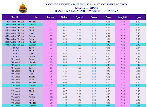 Jadual waktu solat bagi kawasan samarahan, simunjan, serian, sebuyau, meludam dan kawasan² yang sewaktu dengannya.